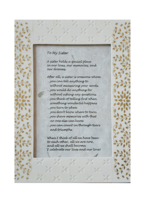 Special thoughts about a sister make this a unique original framed piece of prose. It shares the sentiment that only siblings can know in a joyful gift. A heartfelt message conveying deep gratitude and love for a sister who’s always been there — offering support, laughter, and unconditional care.